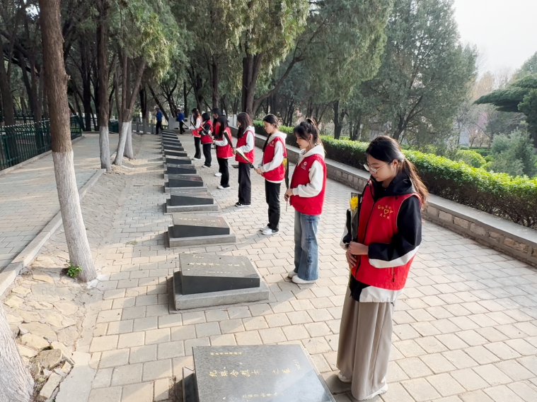 描红仪式结束后,全体同学列队肃立,向烈士纪念碑鞠躬默哀,并依次敬献白菊。素雅的花束与鲜红的碑文相映,寄托着青年一代对英烈的无限哀思。站在烈士长眠之地,我们更加懂得和平的珍贵。我们将以行动践行青春誓言,不负先辈热血守护的山河。