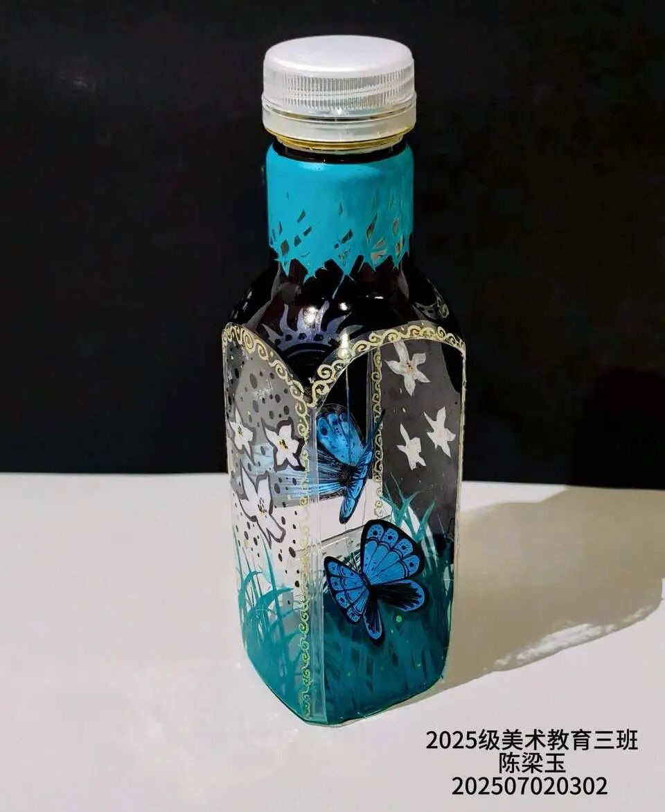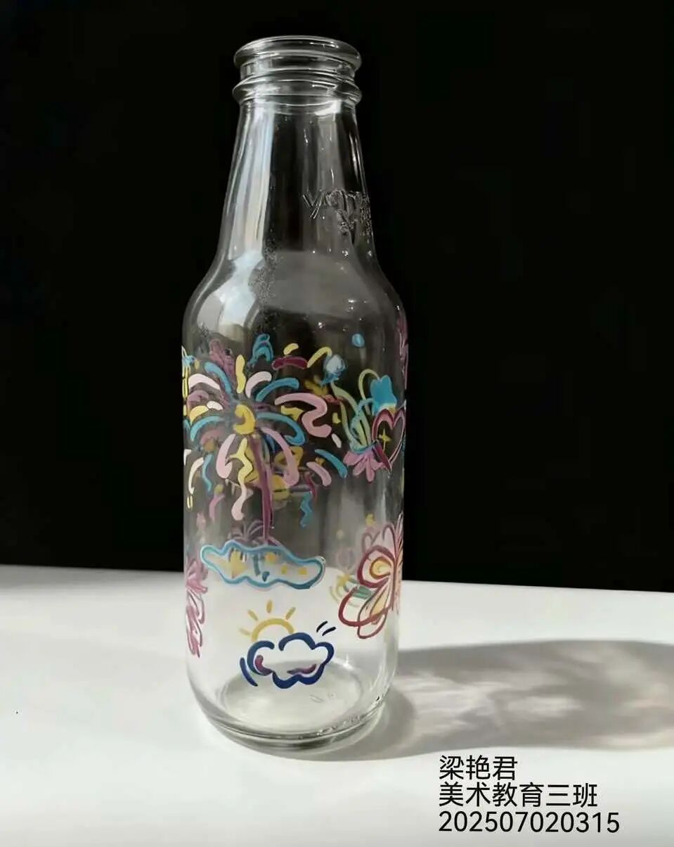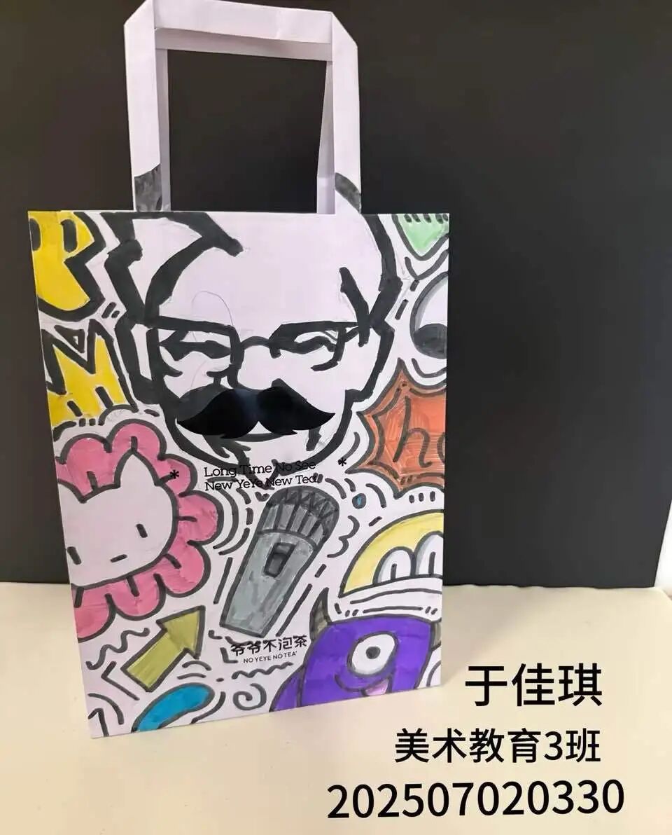 教学中,教师引导学生以个人兴趣为起点,融合城市文化、地方特色、卡通元素、构成形式及手工技法,从素材收集到图形定稿,探索多元设计路径,最终将创意应用于饮料瓶与购物袋等实物。这一实践过程深化了学生对图形语言的理解,突破了思维定式,有效激发了创作热情与实践兴趣。