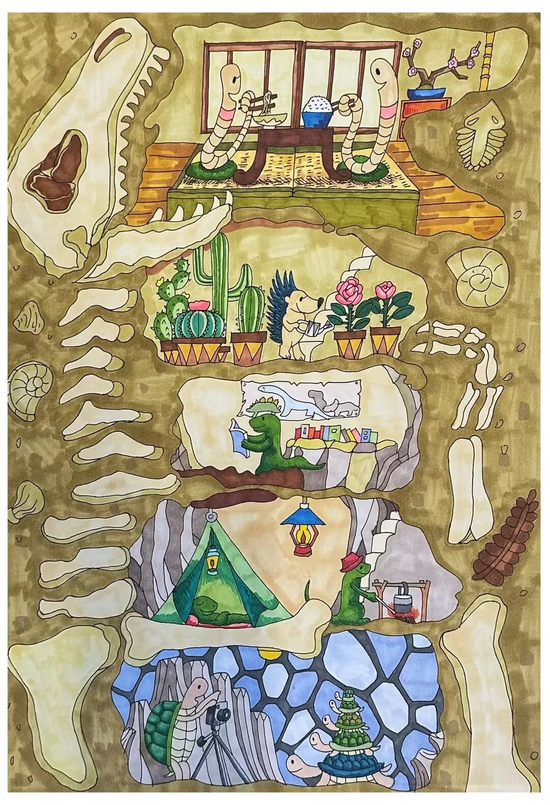 这些作品或许尚显稚嫩,却真实记录了教育者最初的跋涉:当学生们尝试用儿童的逻辑观察世界,用绘本的页面承载情感,用色彩的节奏唤醒共鸣时,美育已不仅仅是一门课程,更是一场关于成长与守护的温柔实践。